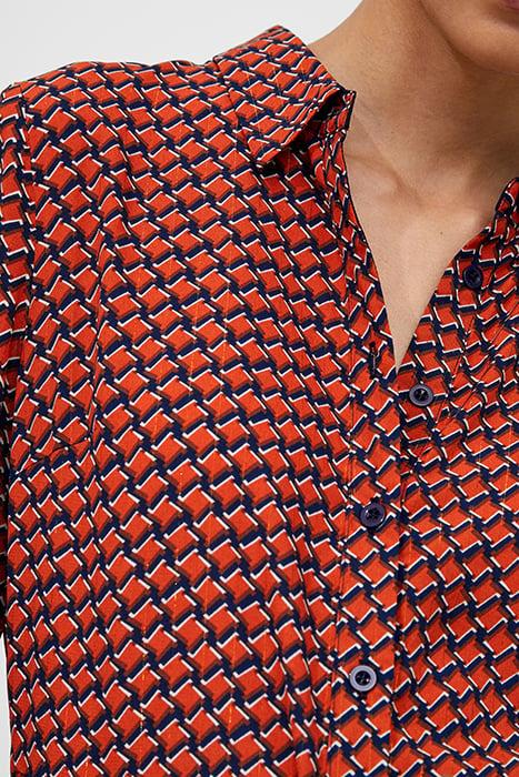 ABSTRACT BELTED SHIRT DRESS ORANGE