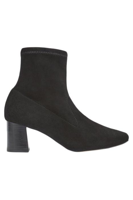 A stretch suede boot has become an LKB signature style, and our new Amira ankle boots are the latest to arrive in our winter collection. Crafted in Spain from velvety-soft and stretchy black suede, these pull-on boots have a square toe, centre seam detail and a 60mm stacked block heel. Wear them with skirts and dresses, or underneath tailoring and denim thanks to their slim-line cut.