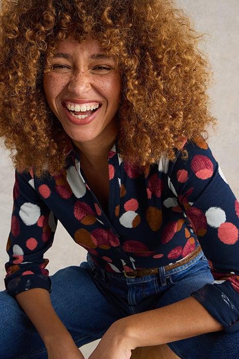 Claret, Ind, Casual, Collar, Printed, 3/4 Sleeve