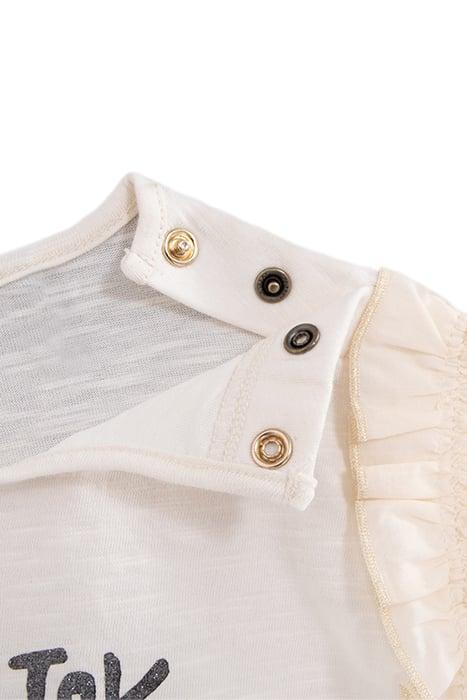 BABY GIRLS’ ECRU ORGANIC COTTON T-SHIRT, GLITTERY SLOGAN