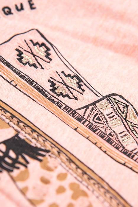 This Ethnic-Inspired Image Has A Mix Of Espadrilles And Embroidery. This Is A Peach-Coloured T-Shirt To Pack In The Suitcase Baby Is Taking On Holiday.