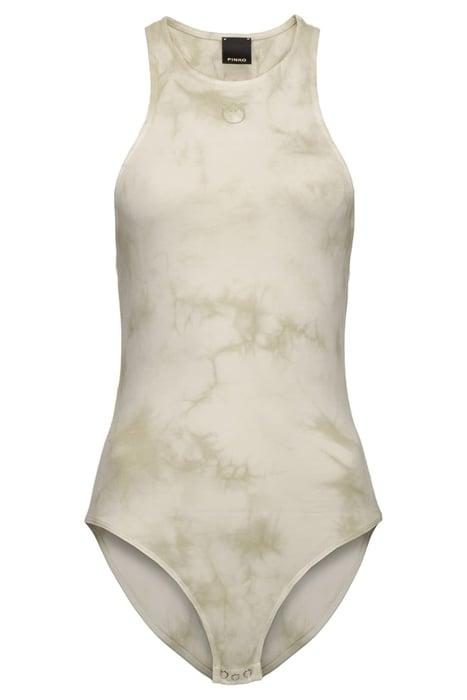 Sleeveless Bodysuit In Stretch Cotton Jersey Fabric With Marble-Effect Tie-Dye Treatment. Racer Neckline, Love Birds Embroidery In The Middle On The Front, And Button Fastening.