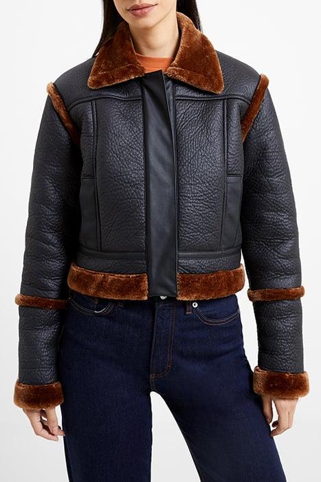 BELEN FAUX FUR L/S CROP JKT BLACK