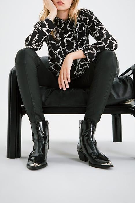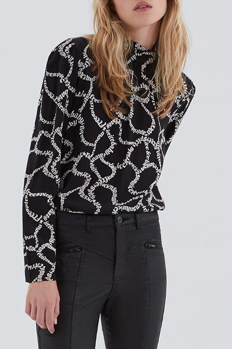BLACK BLOUSE WITH ECRU SLALOM PRINT BLACK