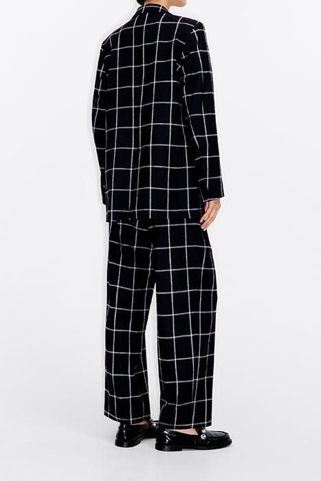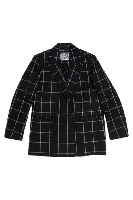 Checked Blazer In Black. A-Line Model, Lapel Collar And Long Sleeves. Double-Breasted Model With Front Flap Pockets.
