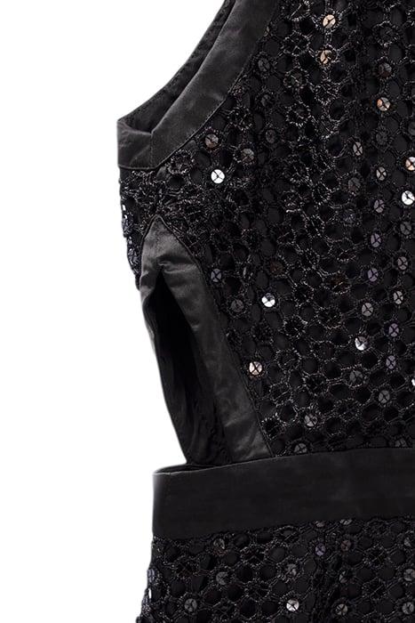 Looking For A Carefully-Crafted Piece That Makes A Confident Outfit? Try This Dress In Black Lace And Sequins With American Armholes.