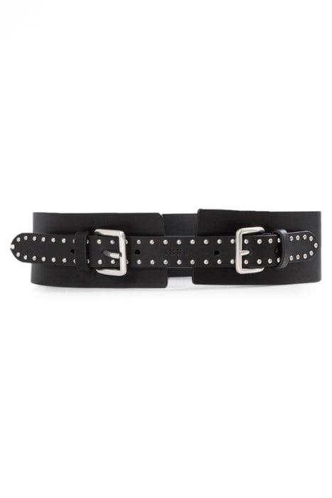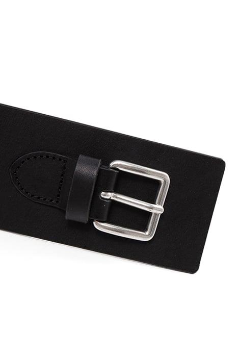 BLACK LEATHER DRESS BELT WITH STUDDED TAB