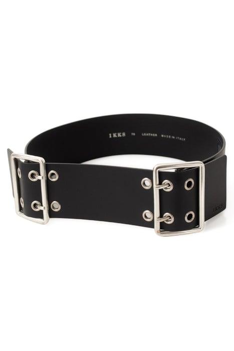 BLACK LEATHER WIDE BELT, DOUBLE BUCKLE AND EYELETS BLACK