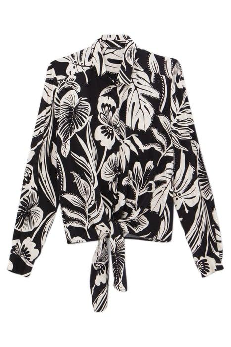 The Tropical Print Becomes Even More Elegant, Especially When It Chooses A Flowy Viscose Shirt. The Panels To Tie To The Side On The Front Look Gorgeous.