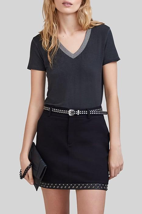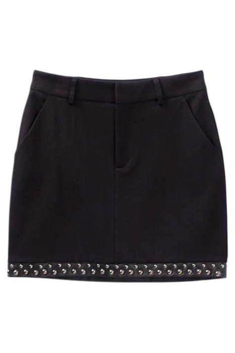 BLACK STUDDED STRAIGHT SHORT SKIRT