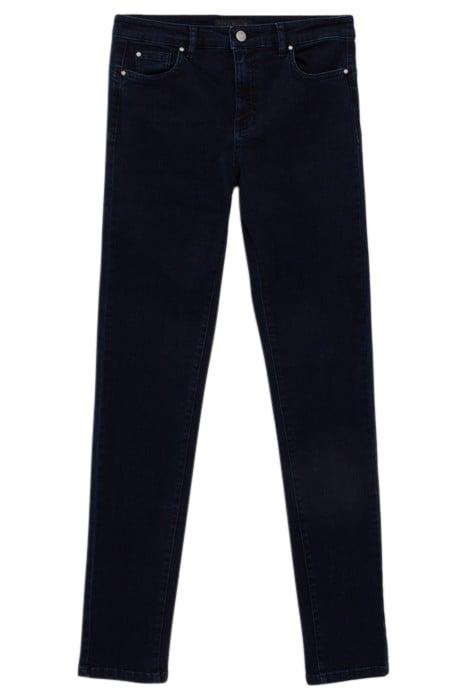 These Slim Blue Black, Almost Raw, Jeans, Are In Waterless Denim, I.E. Faded Using Less Water.