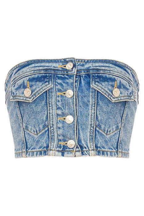 BUSTIER CROP TOP IN RECYCLED DENIM BLUE