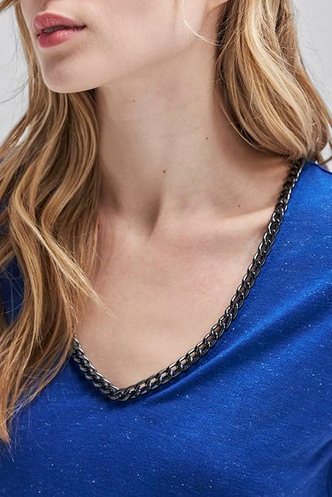 COBALT LUREX T-SHIRT WITH CHAINS ON NECK