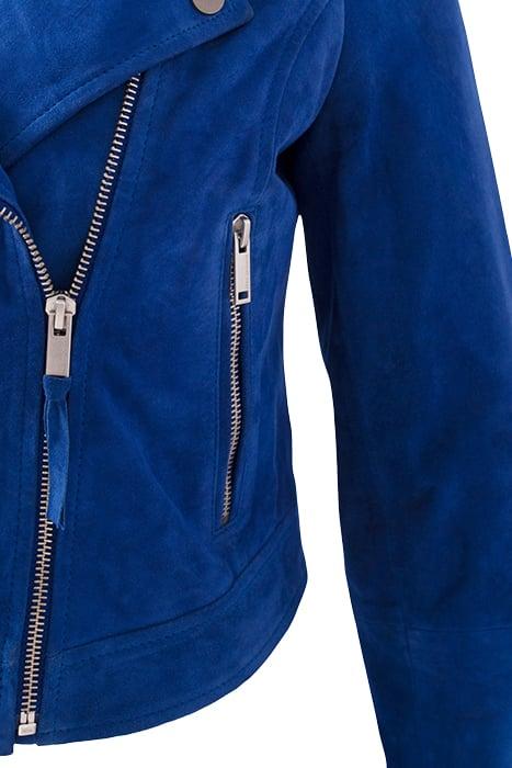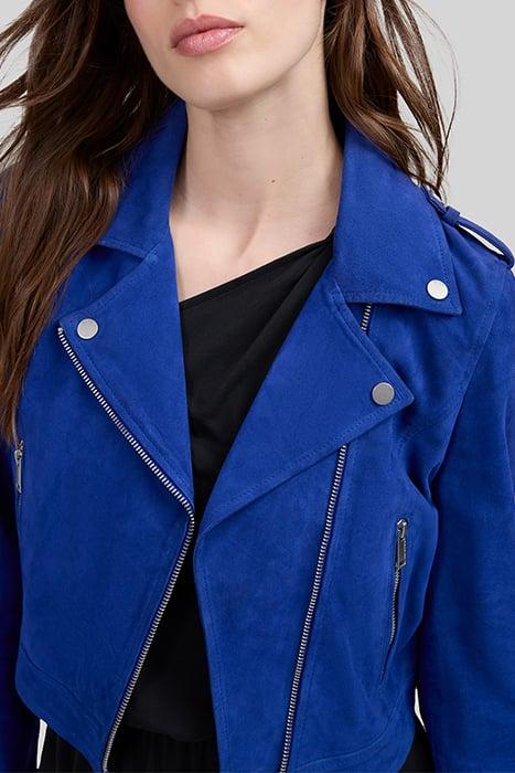 COBALT SUEDE BIKER-STYLE JACKET