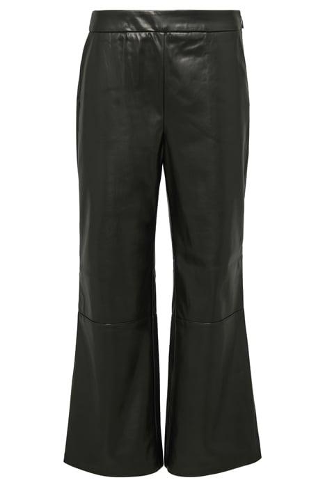 Closure: zip; Details: dividing seam; Fit Overall: regular fit; Fit Trouser: regular fit; Leg: flared leg; Leg Length: ankle; Material: faux leather; Pocket: french pocket; Quality: high quality; Rise: mid rise