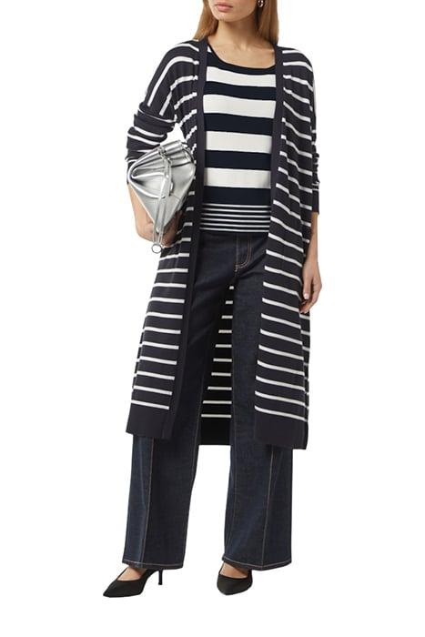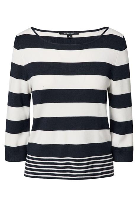 Back part: longer at the back; Details: striped detail; Fabric: fine knit; Fit Overall: relaxed fit; Hem: side slit at hem; Pattern: striped; Sleeve: 3 4 length sleeves