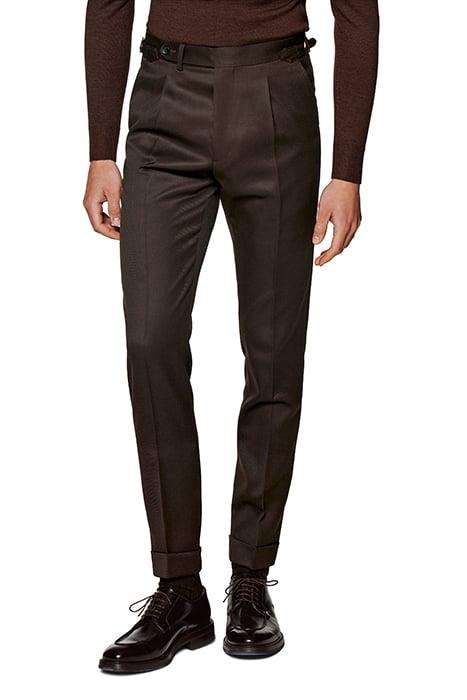 DARK BROWN SLIM LEG TAPERED TROUSERS