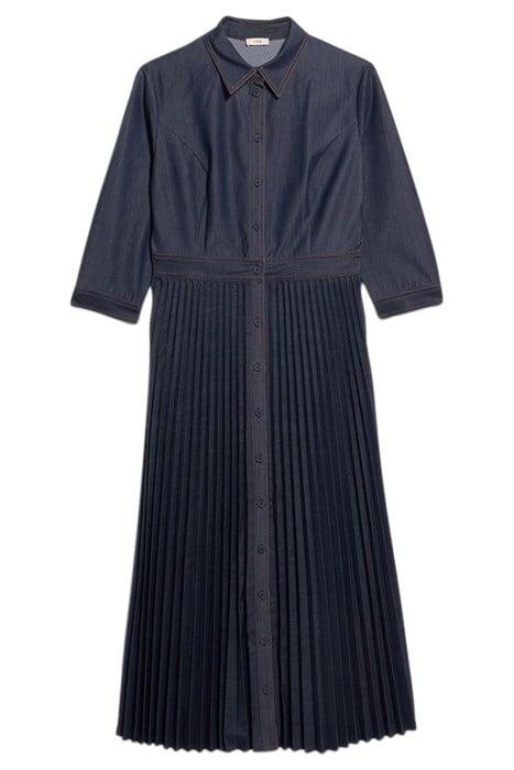 DENIM DRESS WITH PLEATED SKIRT BLUE
