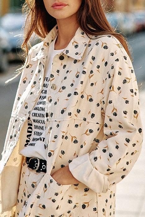 ECRU DENIM JACKET WITH ROCK MINI-FLOWER PRINT