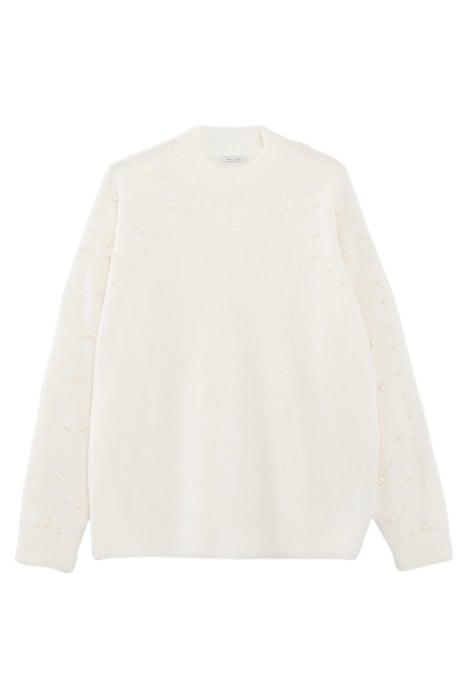 ECRU KNIT SWEATER WITH EMBROIDERED PEARLY BEADS