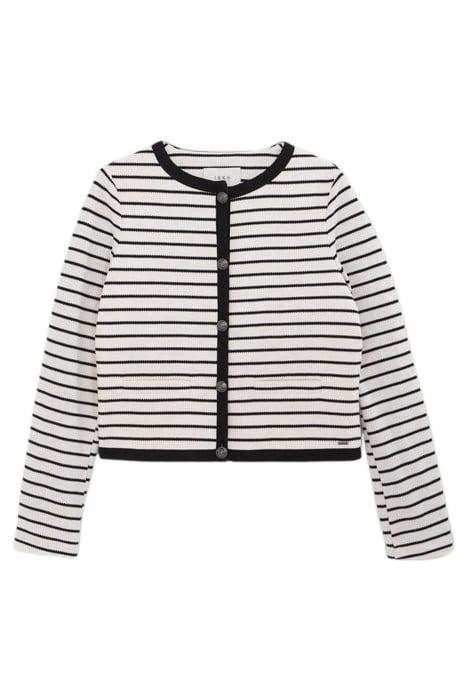 ECRU PIQUE KNIT JACKET WITH BLACK STRIPES
