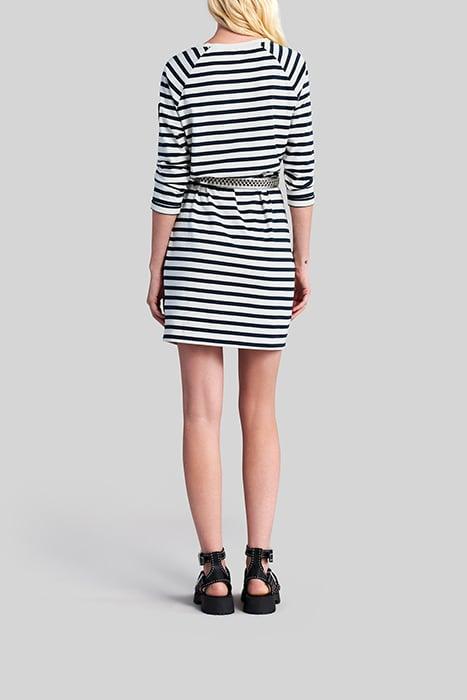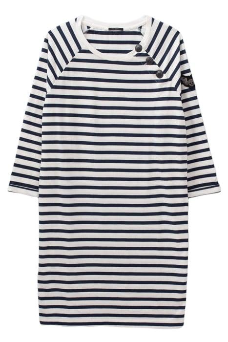 ECRU SAILOR-STRIPE DRESS WITH BADGE ON SLEEVE