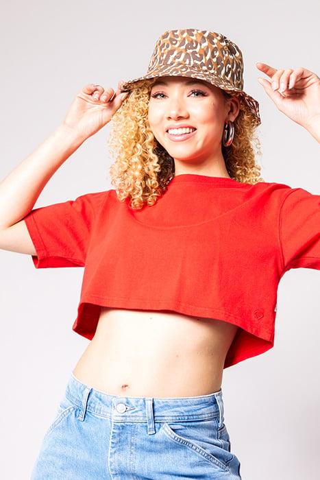 America Today T-Shirt For Women. The Eden Is A Cropped T-Shirt, Has An Oversized Fit And A Round Neck. This Tee Is Fun To Style With High Waisted Pants.