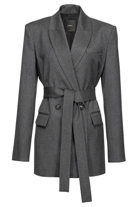 Blazer In Stretch Wool-Blend Flannel, With Lapel Collar, Long Set-In Sleeves, Small Welt Pocket And Flap Pockets At The Sides. Complete With Matching Belt In The Same Fabric, Which Fastens At The Waist. Lined. Double-Breasted Button Fastening.