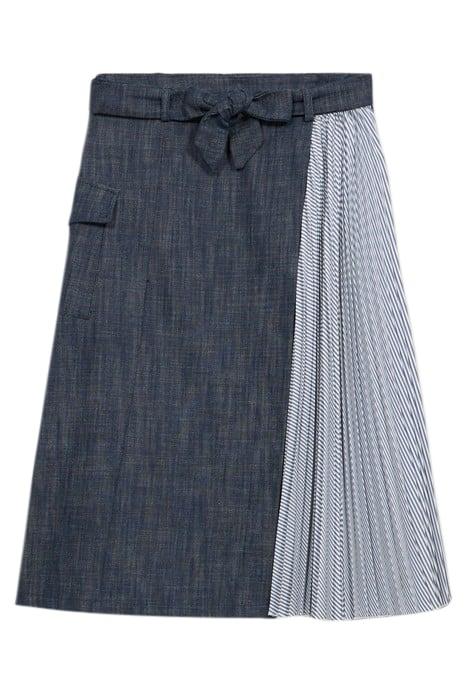 FLARED DENIM SKIRT WITH PLEATED DETAIL BLUE