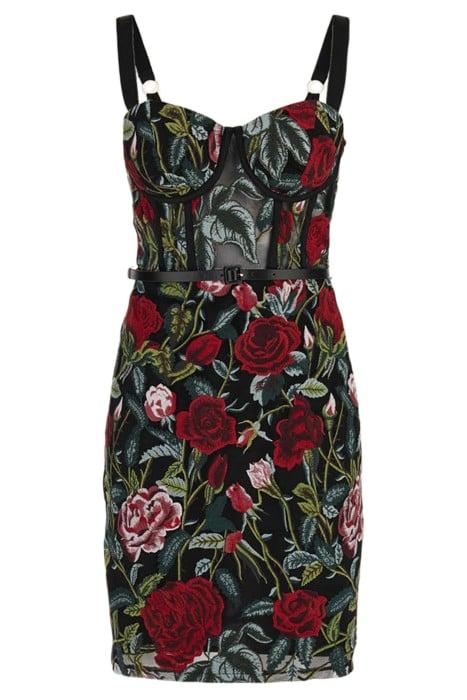 Impeccably crafted, the Floral Corset Dress Black Multi exudes sophistication and a timeless allure.