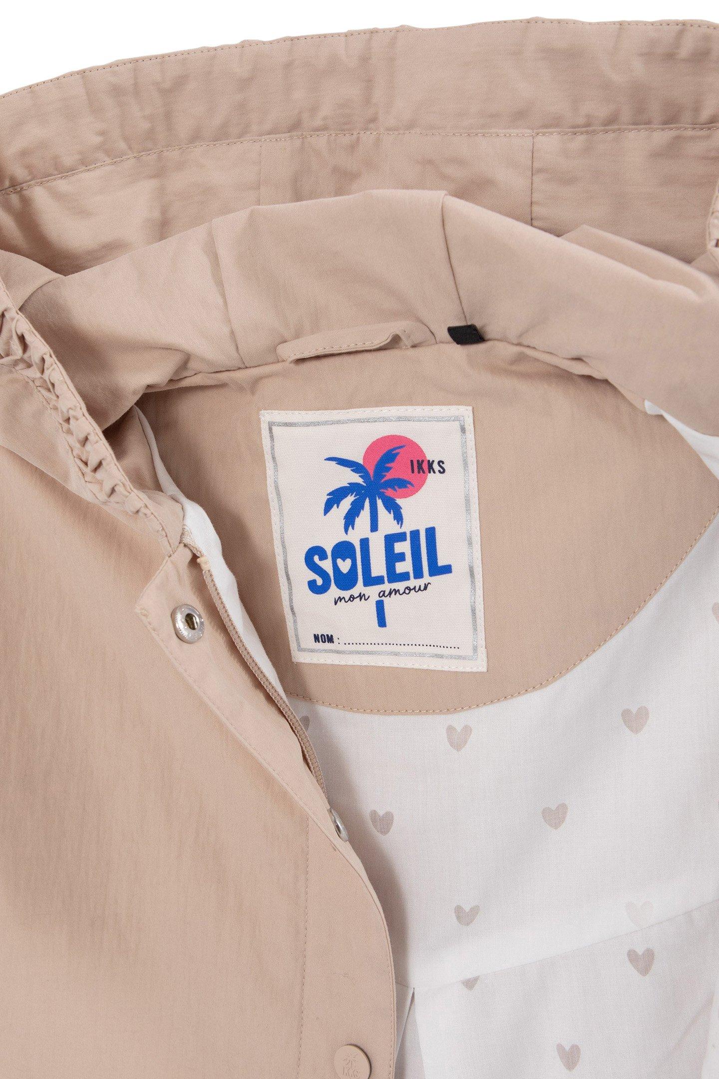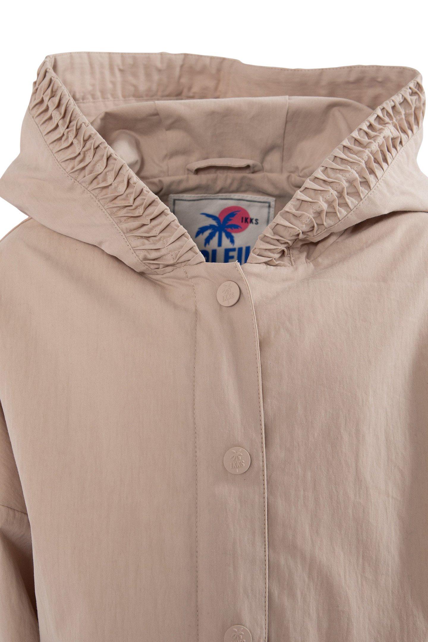 GIRLS' BEIGE TRENCH COAT WITH DECORATIVE DETAIL ON HOOD