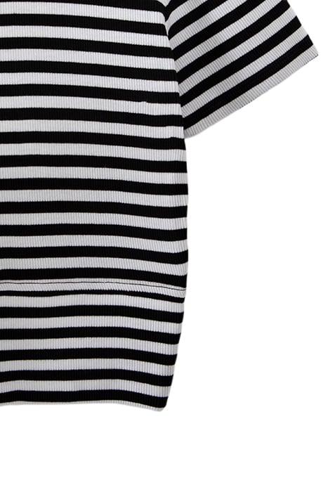 GIRL’S BLACK T-SHIRT WITH WHITE STRIPES AND BOW