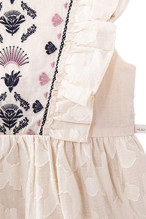 GIRLS’ ECRU DRESS WITH EMBROIDERY AND FLOWER JACQUARD
