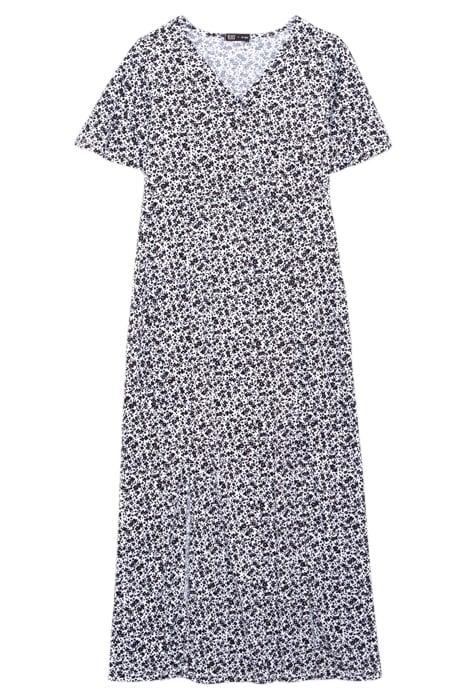 GIRLS' OFF-WHITE LONG DRESS WITH BLACK FLOWER PRINT