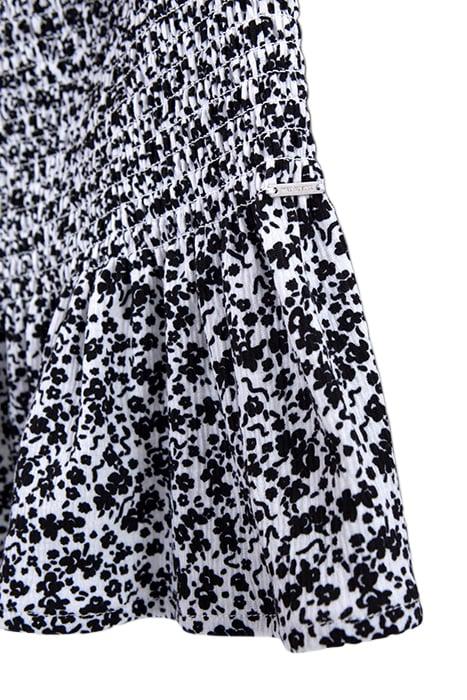 GIRLS' OFF-WHITE SKIRT WITH BLACK FLOWER PRINT