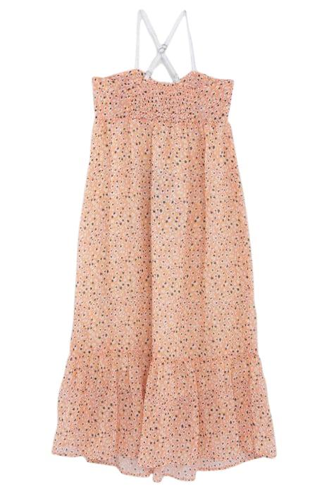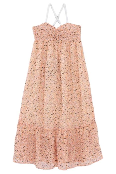 GIRLS' PEACH LONG DRESS WITH FLOWER TACHIST PRINT