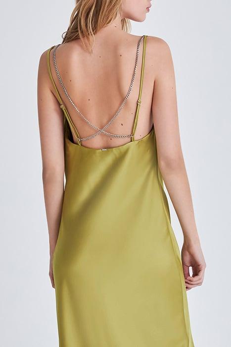 GREEN SATIN STRAPPY LONG DRESS ABSINTH