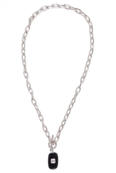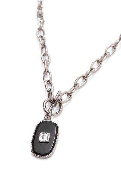 GREY CABLE LINK CHAIN LONG NECKLACE, BLACK PENDANT