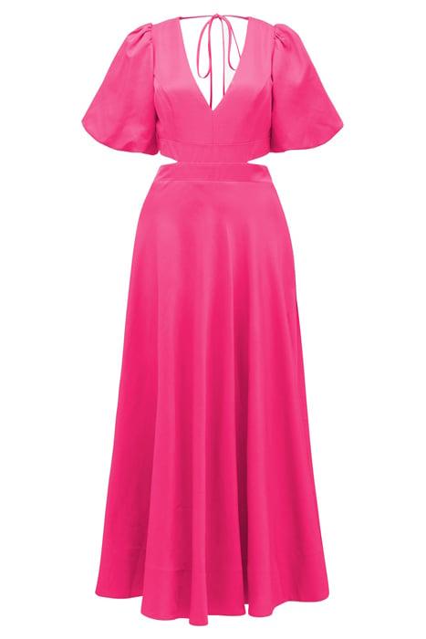 HADLEY TIE BACK MIDI DRESS HOT PINK