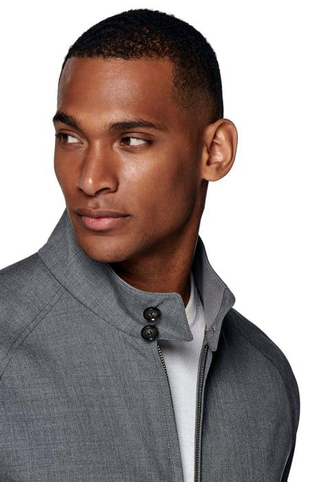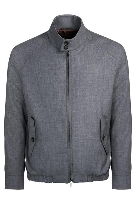 • A lightweight and compact layering piece, this all-new Harrington jacket is cut from pure wool by the Vitale Barberis Canonico mill. Tailored to a slim fit, it features a two-button mock neck collar, double zip closure and elastic hem.