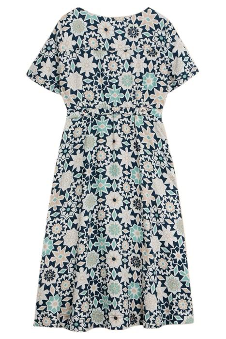Add a touch of effortless charm to your ensemble with the Ivy Linen Mini Dress Blue Printed, tailored for a seamless fit and sleek design.