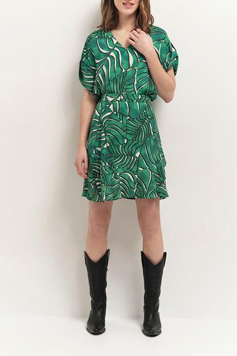 JERK - GREEN GRASS SHORT SKIRT WITH ARTY PALM PRINT