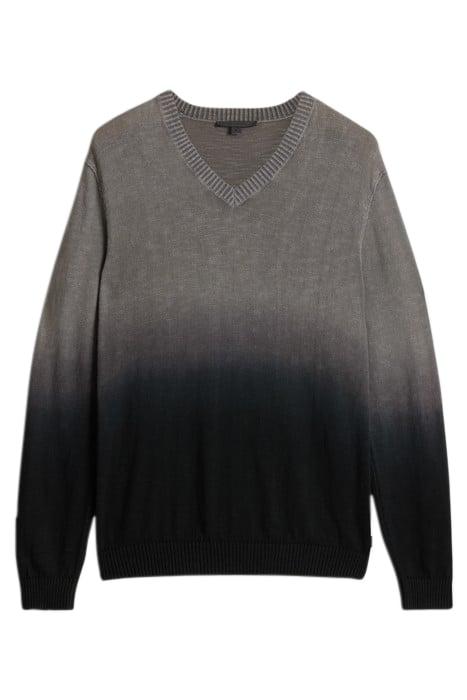 KANE LS SLUB COTTON VEE WITH DIP DYE SEAL GREY