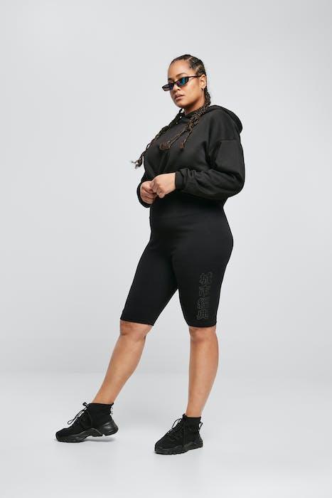 LADIES HIGH WAIST BRANDED CYCLE SHORTS BLACK/BLACK