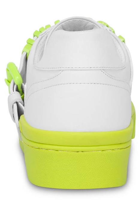 Calfskin sneakers with decorative strap with painted Lettering logo and branded rubber sole.