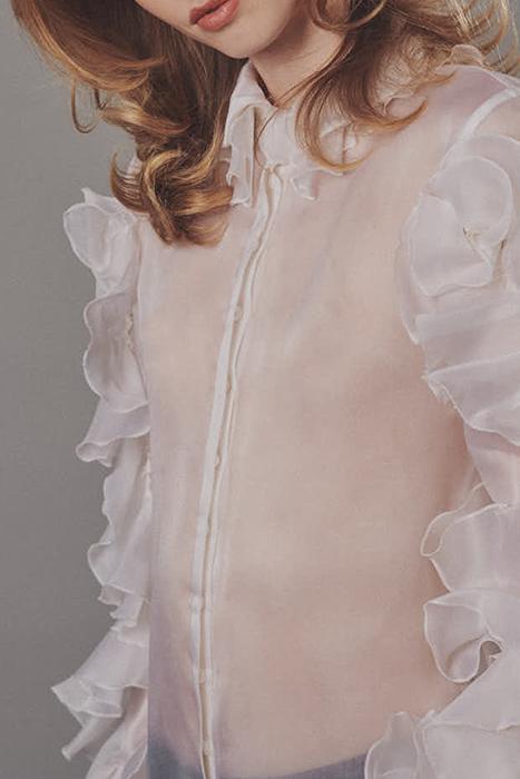 Organza Blouse Decorated With Ruffle Sleeves