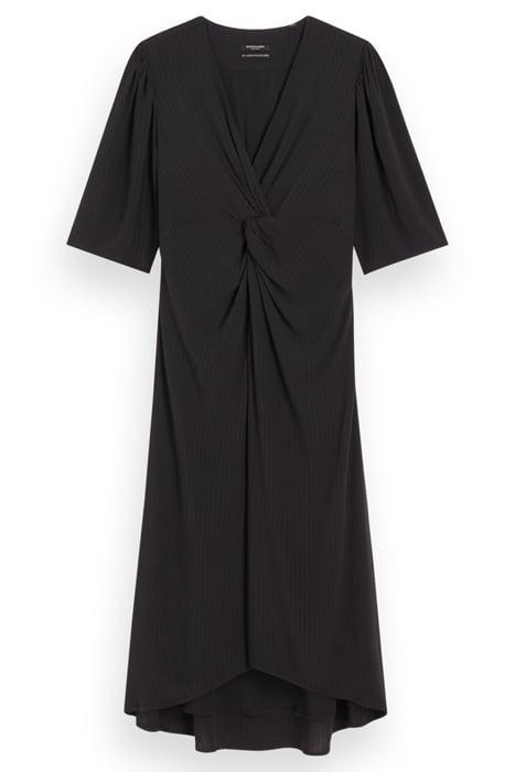 MIDI WRAP DRESS WITH KNOT DETAIL BLACK