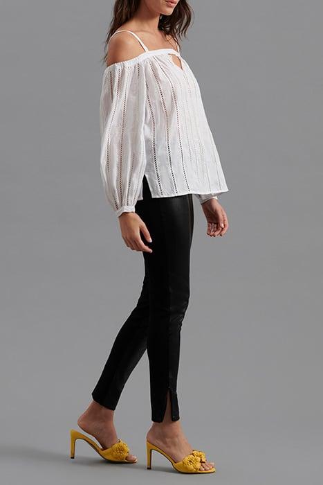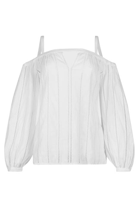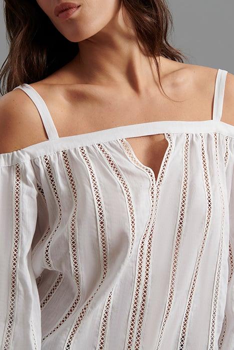 White Off The Shoulder Long Sleeve Top With Lattice Embroidery