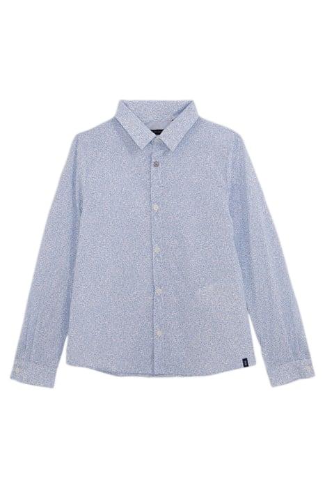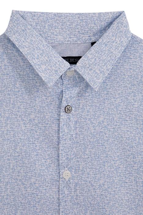 Enjoy The Return Of The Minimalist Print, A Staple In Boys' Wardrobes. Light Blue On An Off-White Background, The Shirt Can Be Worn In Any Style, From Chic To Casual.