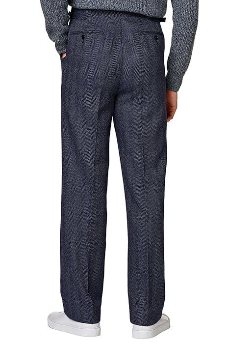 NAVY HERRINGBONE WIDE LEG STRAIGHT TROUSERS